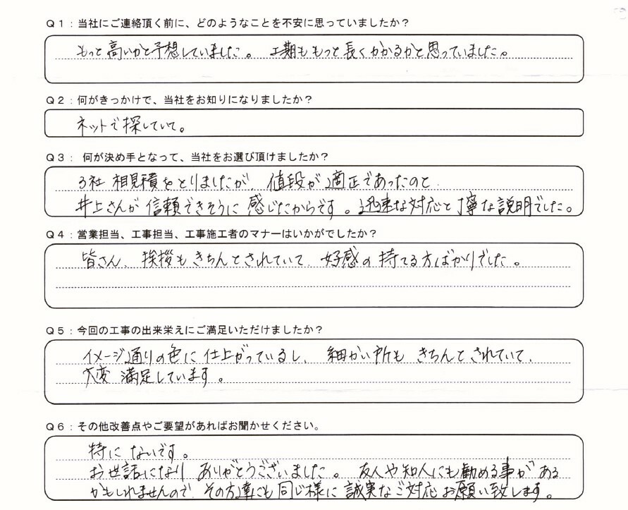 今回の工事の出来栄えにご満足いただけましたか?