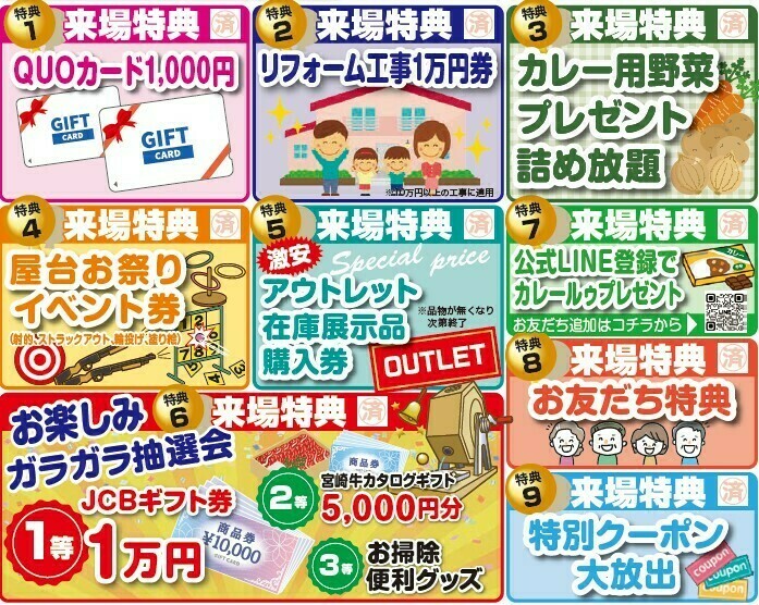 さらにご来場9大感謝祭特典では特別クーポン券や、お楽しみ抽選会などをご用意しております!