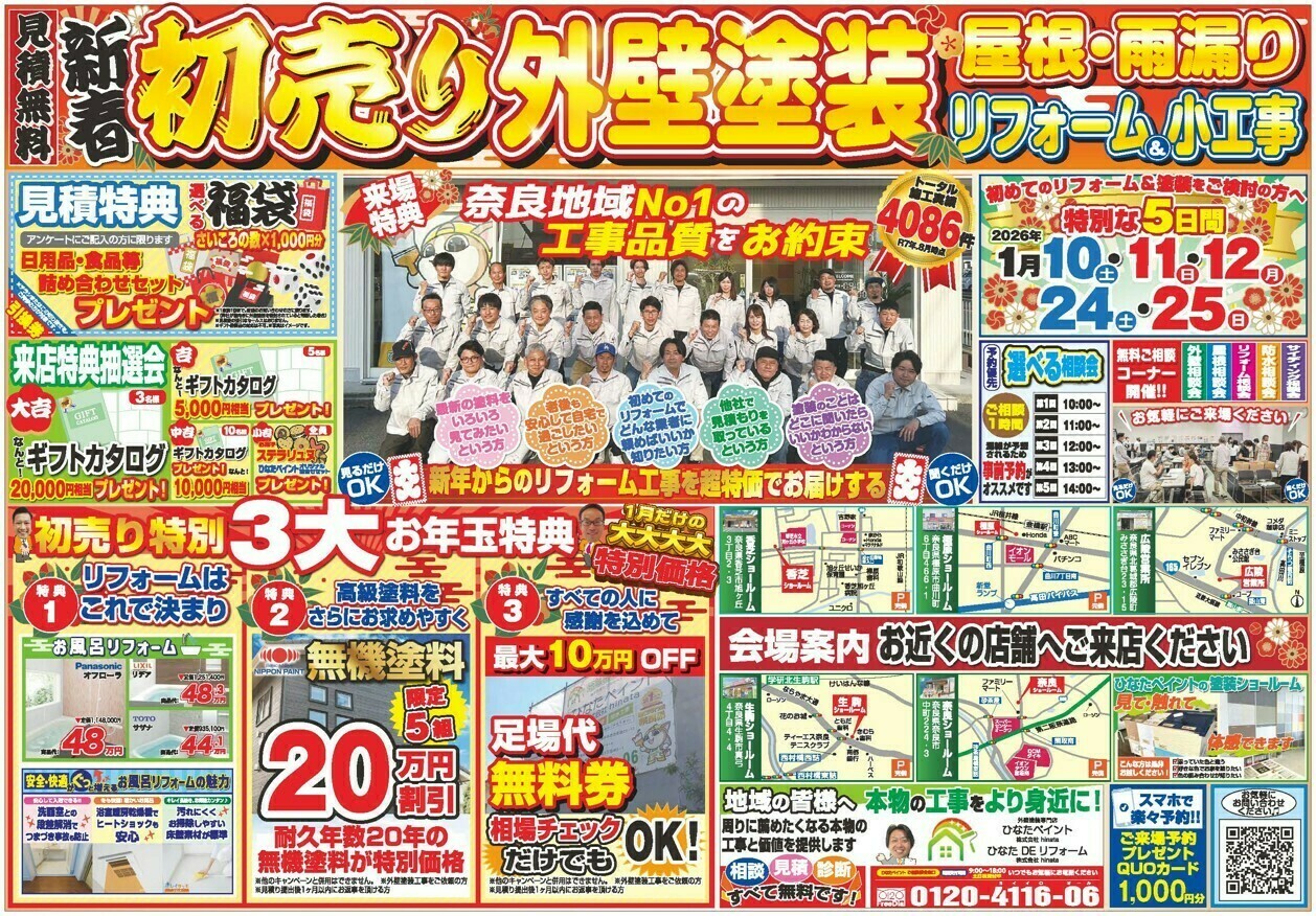 さて、新年のスタートにあわせて、ひなたペイント・ひなたDEリフォームでは 毎年恒例の「新春初売りイベント」 を開催いたします。