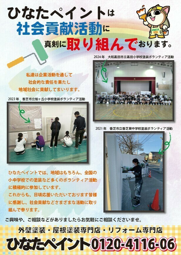 奈良の外壁塗装専門店であるひなたペイントは、住まいを守る塗装工事だけでなく、社会貢献活動にも真剣に取り組んでいます。